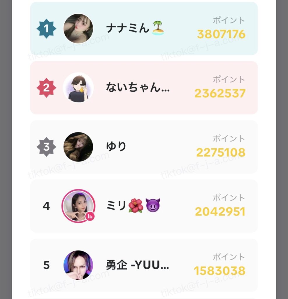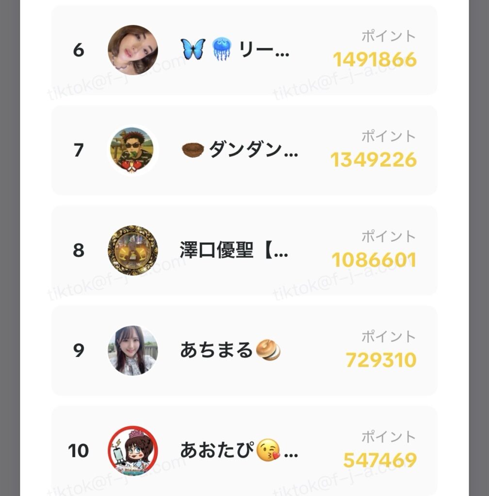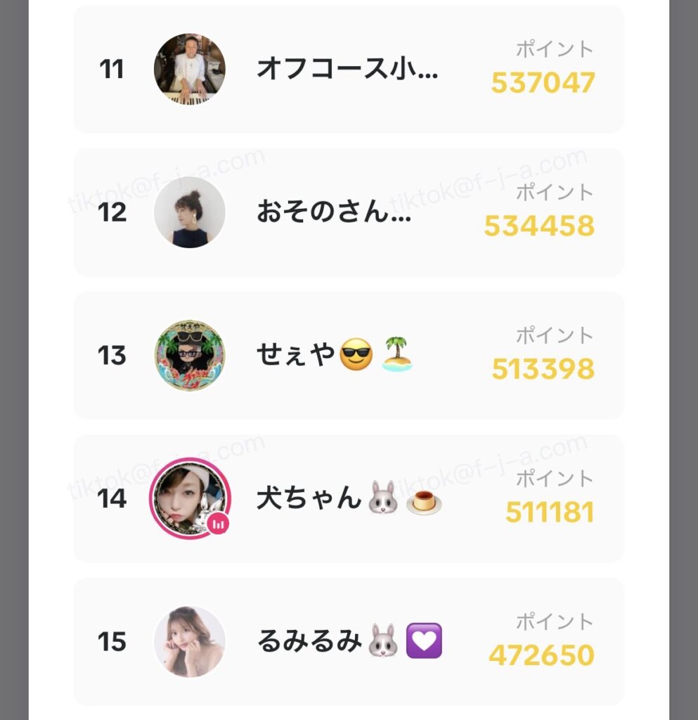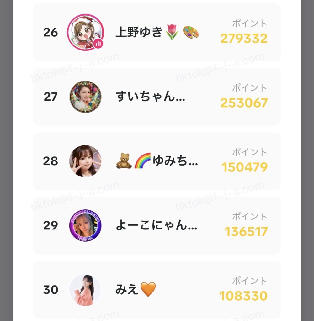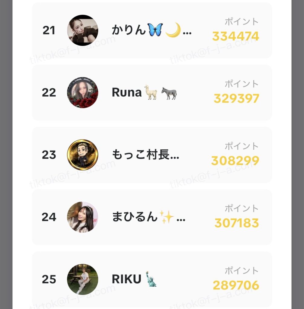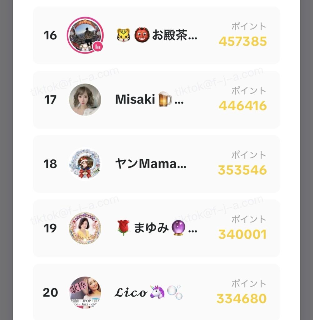 - LIVE時間:1分= 20ポイント