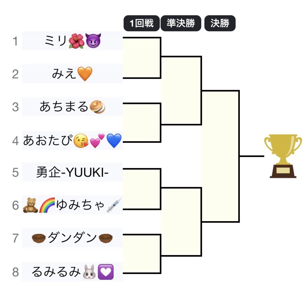※前日までに当たる可能性のある対戦相手は全員相互フォローをお願いします。