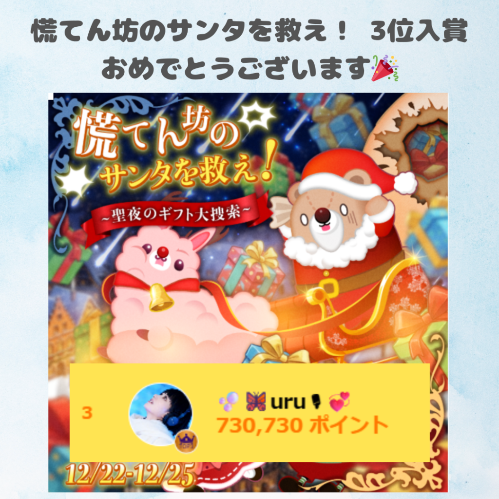 🫧🦋‪uru🎙‪💞「慌てん坊のサンタを救え!」にて総合3位入賞