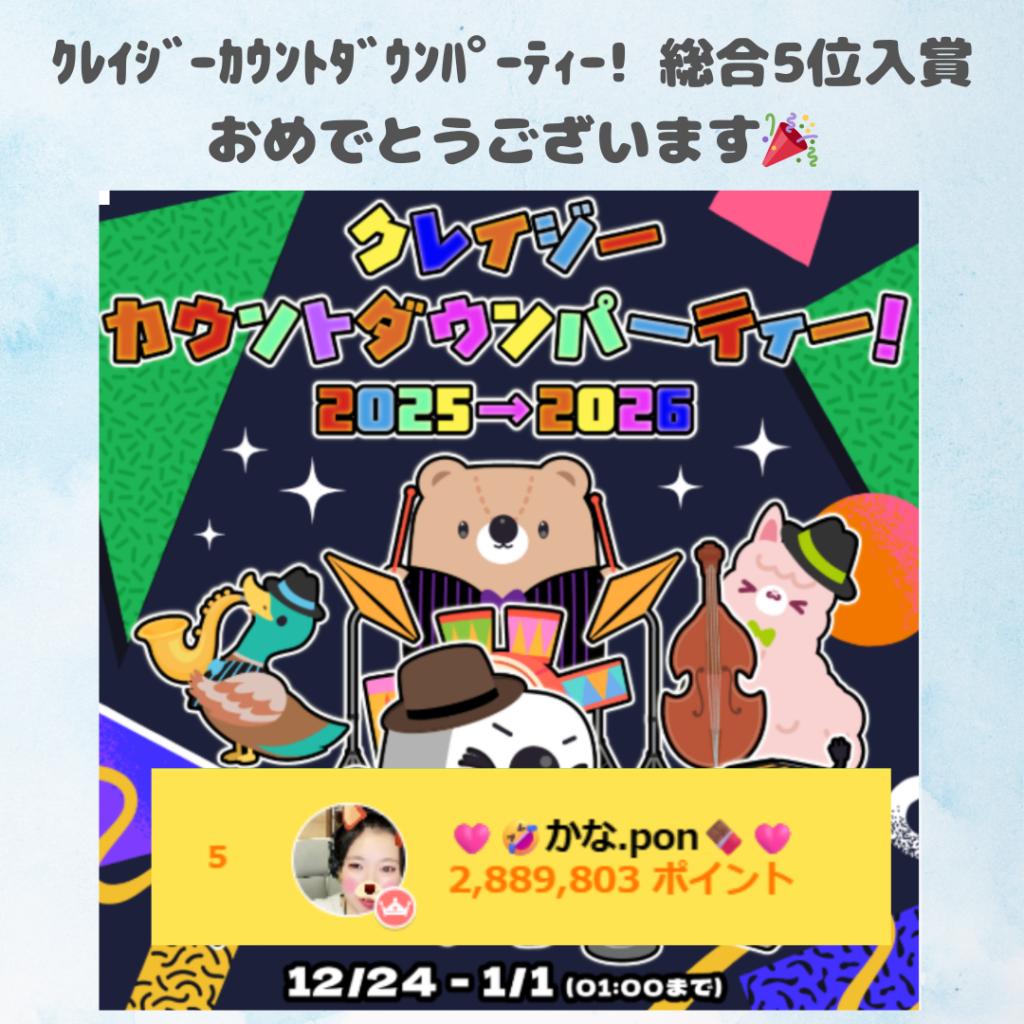 🩷🤣かな.pon🍫🩷「クレイジーカウンントダウンパーティー!」にて総合5位入賞