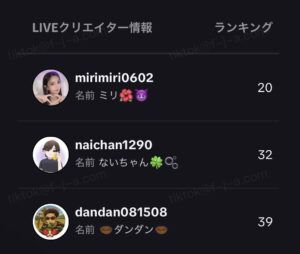 イベント期間中のギフト獲得量(1ダイヤ1P / バトル時2P)と配信時間(1分20P)で順位が決まります。