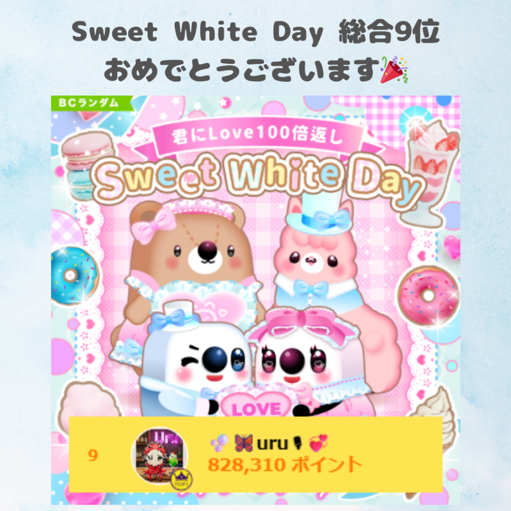 🫧🦋‪uru🎙‪💞「君にLove100倍返し Sweet White Day」にて総合9位入賞