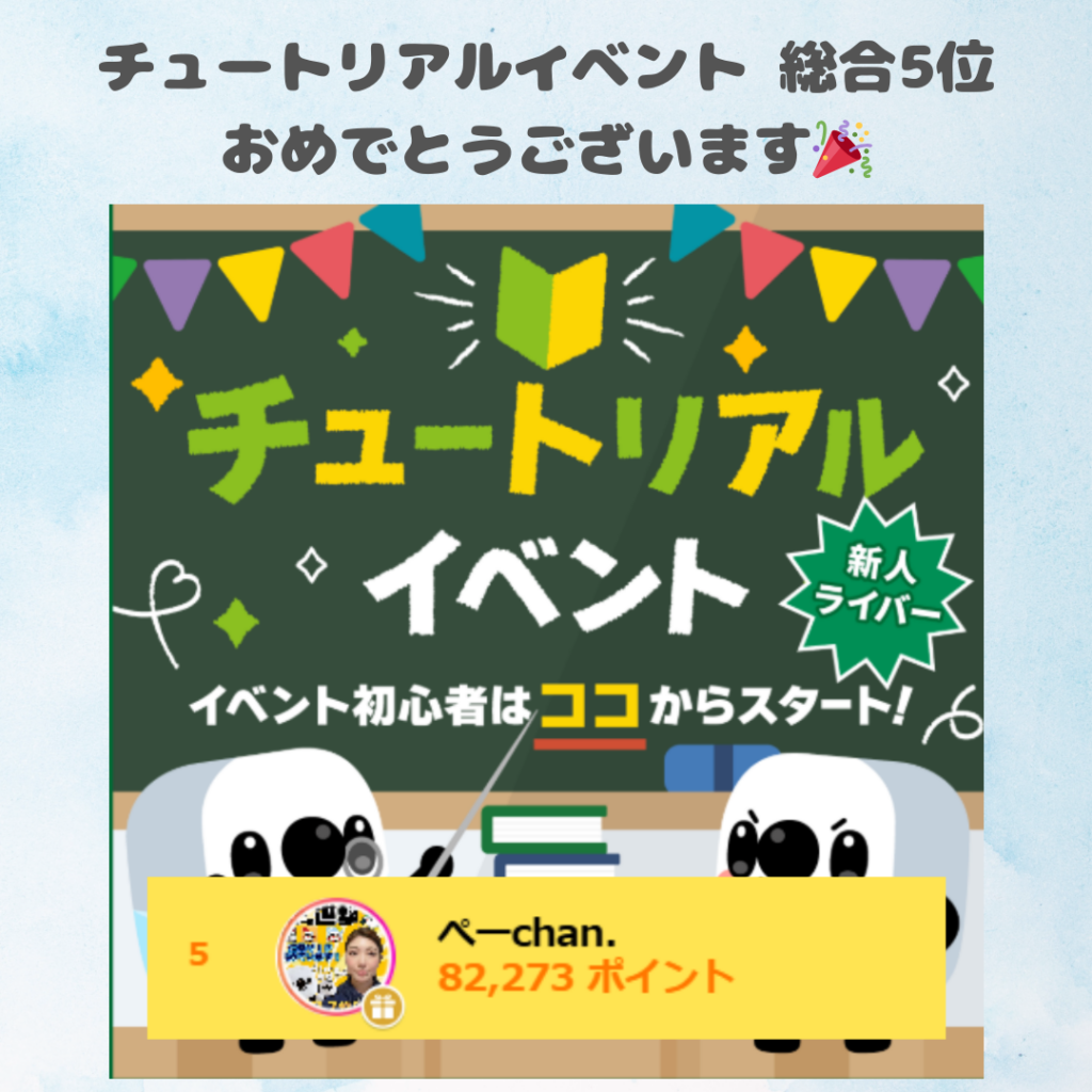 17LIVEにて弊社所属ライバーぺーchan.さんが3/1~3/16に行われました「🔰チュートリアルイベント」にて総合5位に入賞されました。