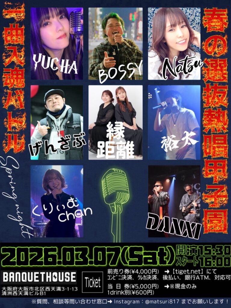 3月7日に大阪で行われた「春の選抜熱唱甲子園」にて企画の段階からアドバイスさせて頂き、更に弊社代表のキヨ8118がシークレットゲストとして出演、マネージャーは受付を担当と、お手伝いをさせて頂きました。当日は大変盛り上がり大盛況になりとても良か... -